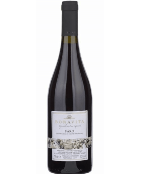 Bonavita Faro DOC: Rosso fermo secco della denominazione locale ottenuto da Nerello Mascalese e Nerello Cappuccio, con affinamento che può includere botti di legno e un lungo riposo in vetro. Questo vino è un equilibrio di sapidità, frutti rossi maturi, spezie mediterranee e una piacevole acidità, con tannini eleganti che ne fanno un ottimo accompagnamento a piatti strutturati.